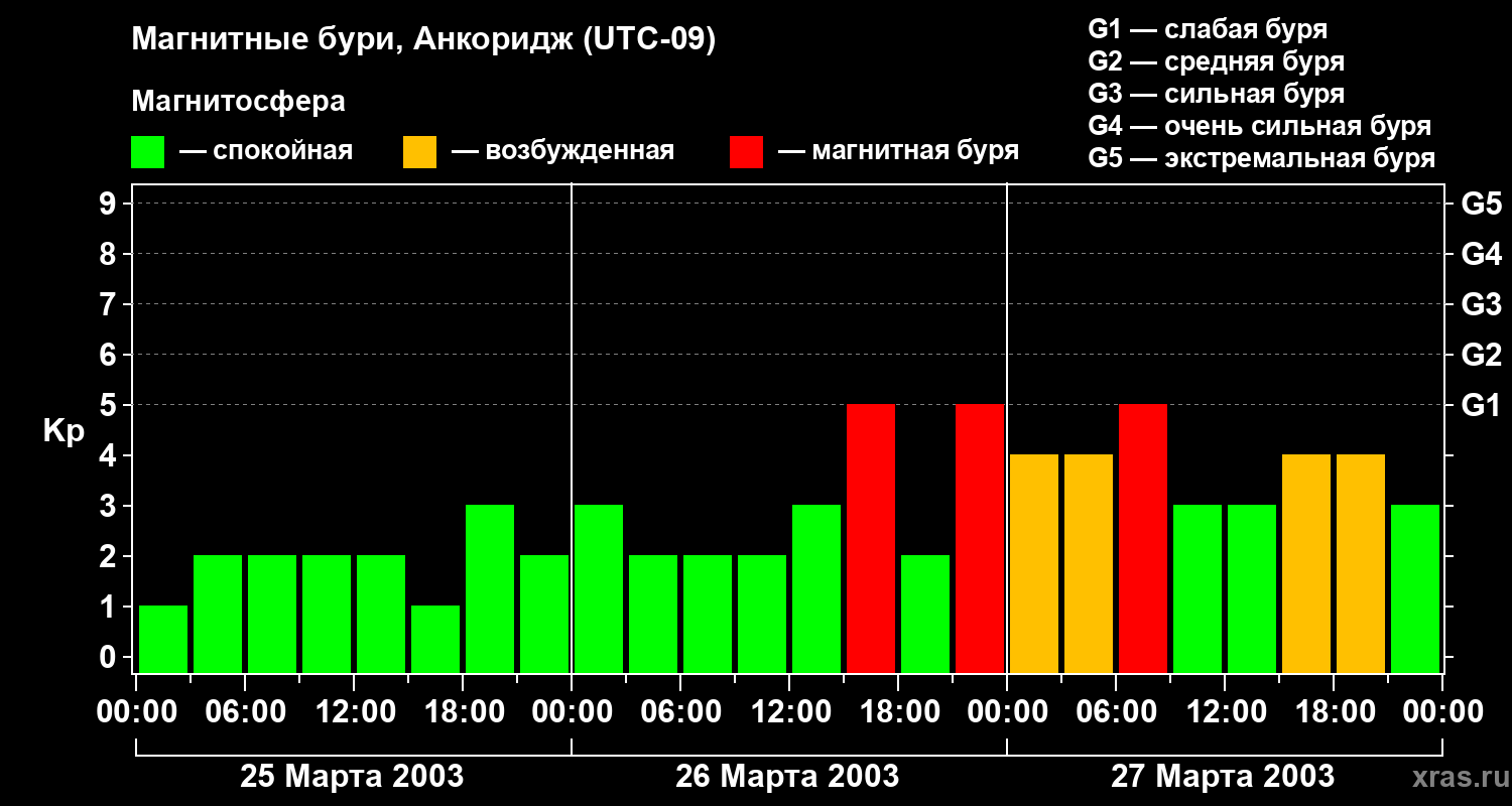 Магнитные бури в Анкоридже — 27 марта 2003 года