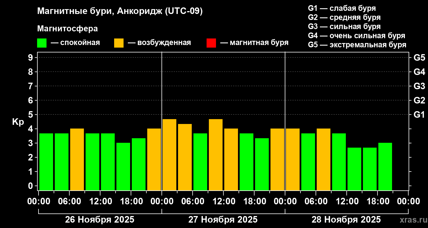 Магнитные бури в Анкоридже — 28 ноября 2025 года