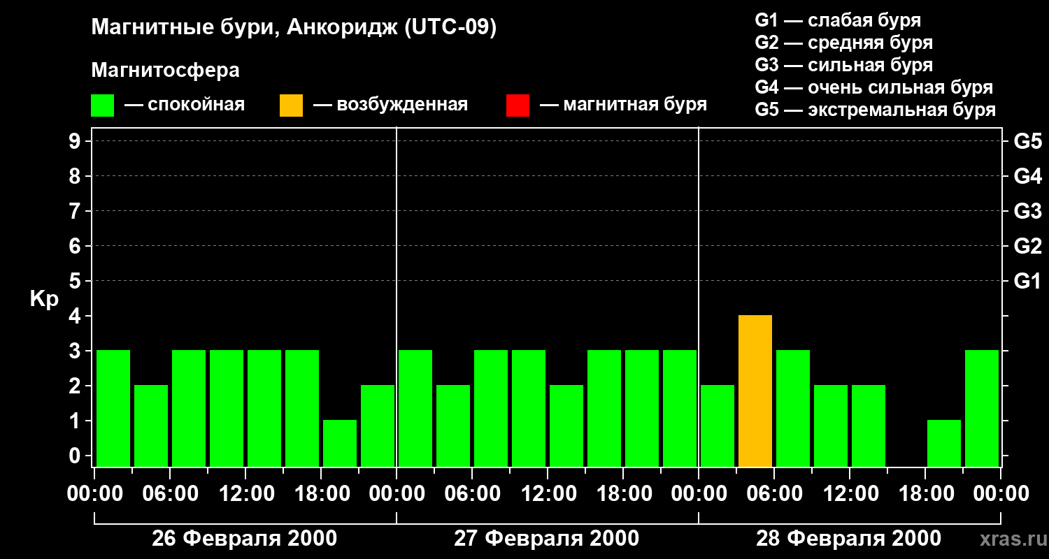 Магнитные бури в Анкоридже — 28 февраля 2000 года