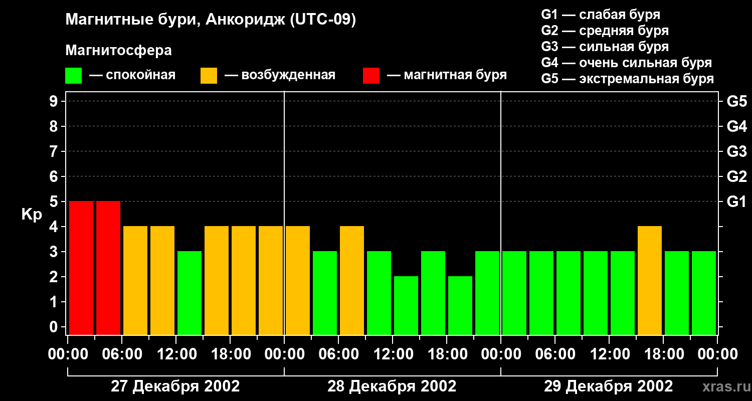 Магнитные бури в Анкоридже — 29 декабря 2002 года