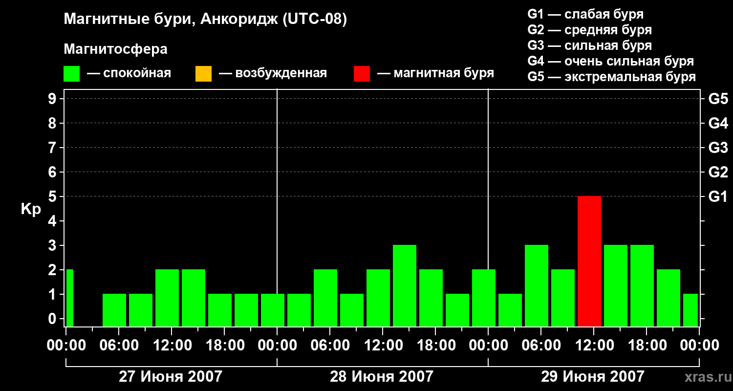Магнитные бури в Анкоридже — 29 июня 2007 года