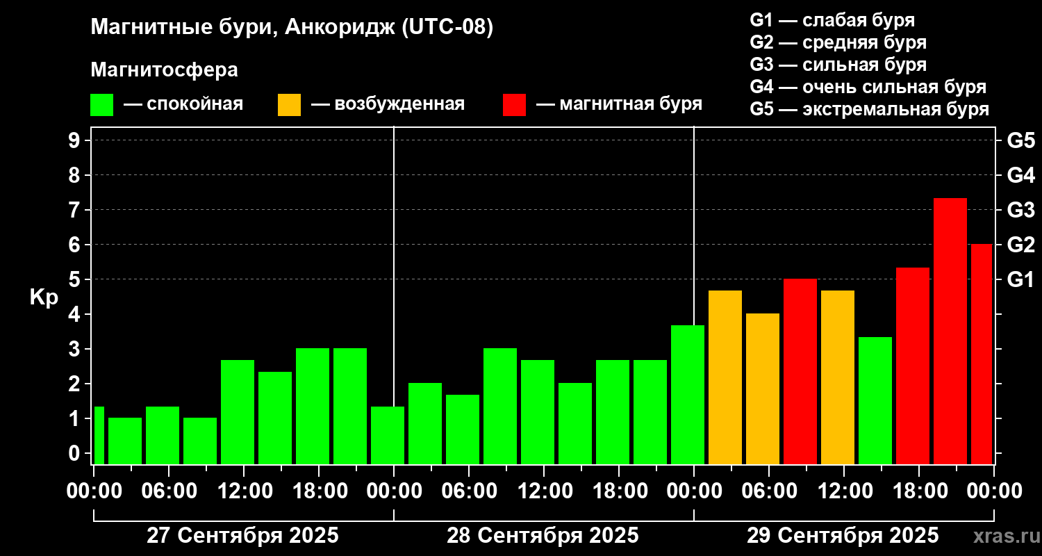 Магнитные бури в Анкоридже — 29 сентября 2025 года
