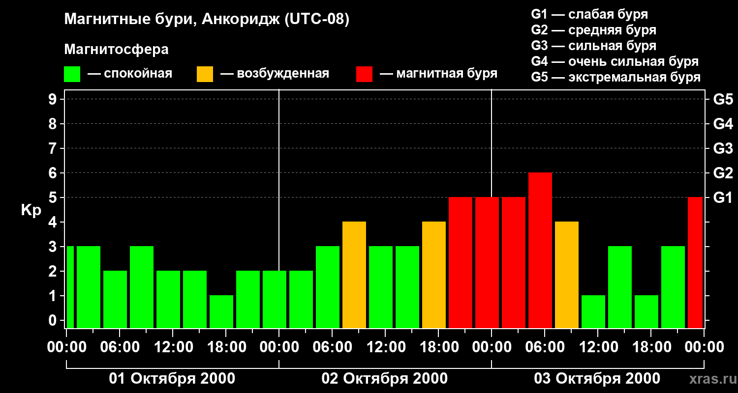 Магнитные бури в Анкоридже — 3 октября 2000 года