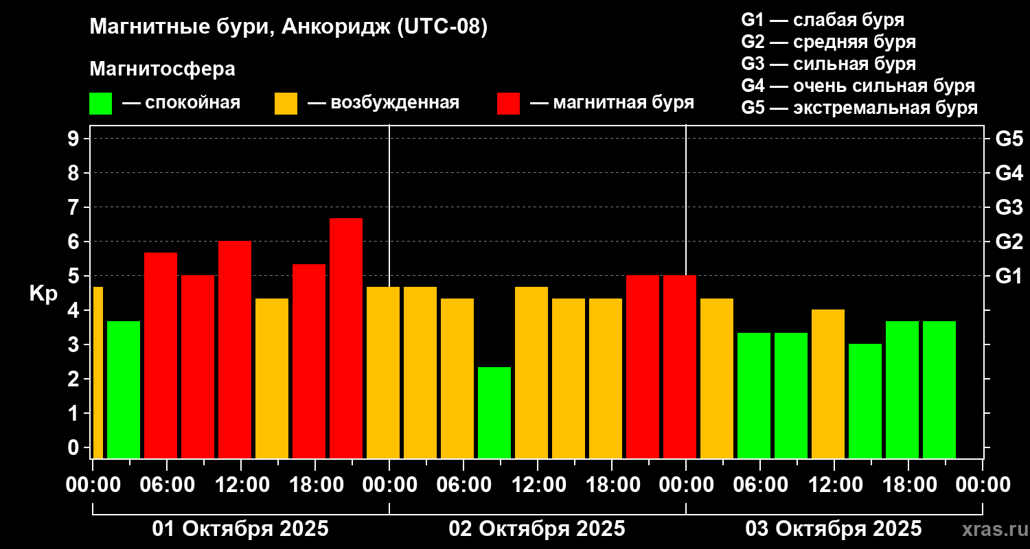 Магнитные бури в Анкоридже — 3 октября 2025 года