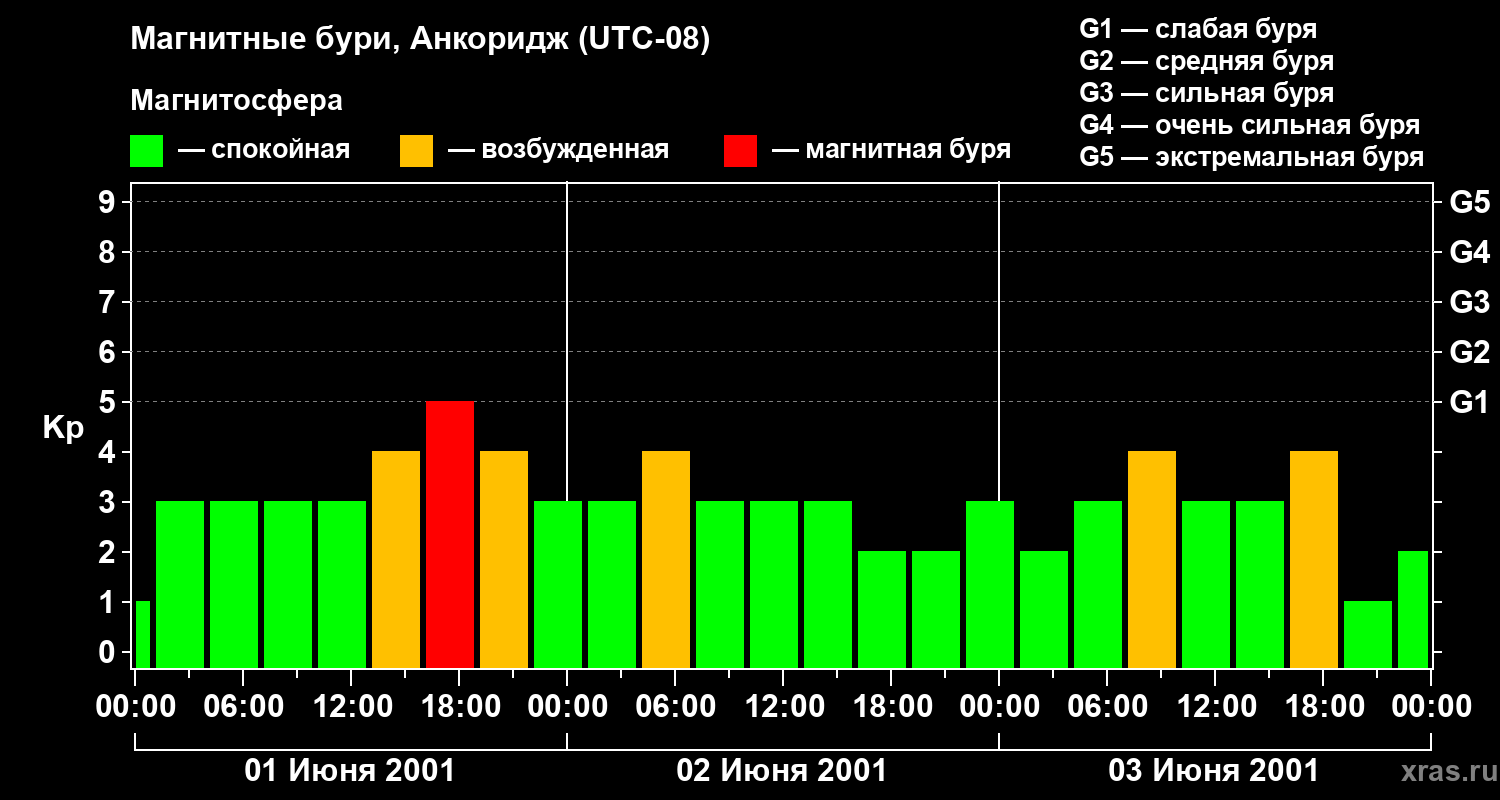 Магнитные бури в Анкоридже 3 июня 2001 года