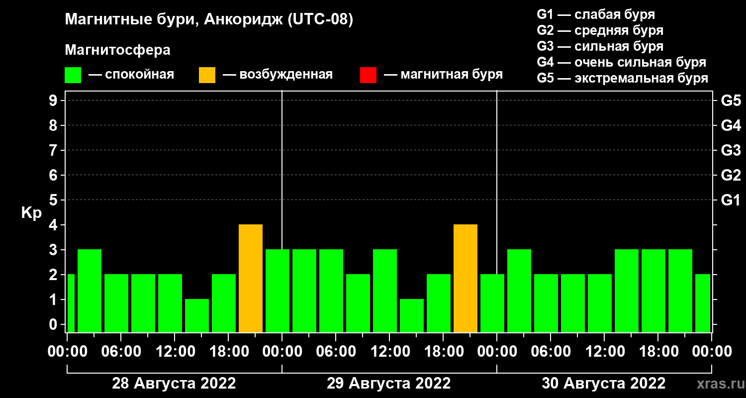 Магнитные бури в Анкоридже — 30 августа 2022 года