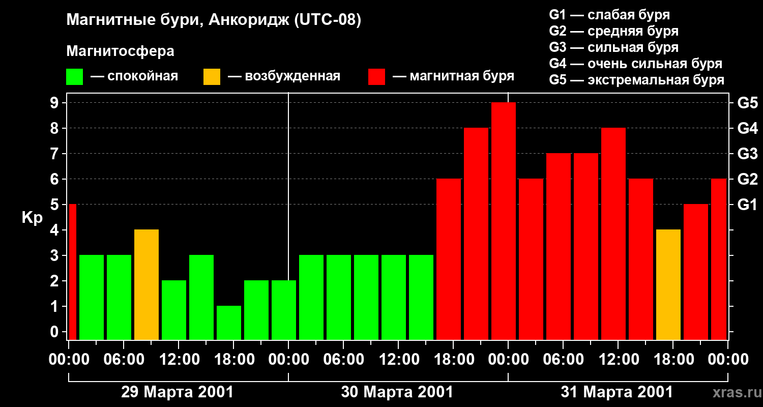 Магнитные бури в Анкоридже — 31 марта 2001 года