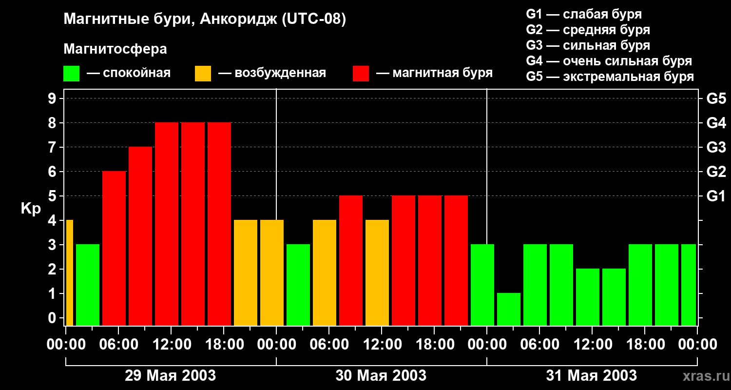 Магнитные бури в Анкоридже в мае 2003 года