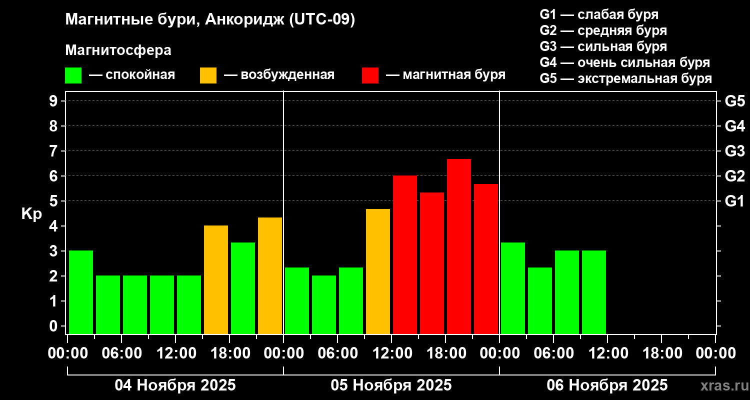 Магнитные бури в Анкоридже 6 ноября 2025 года