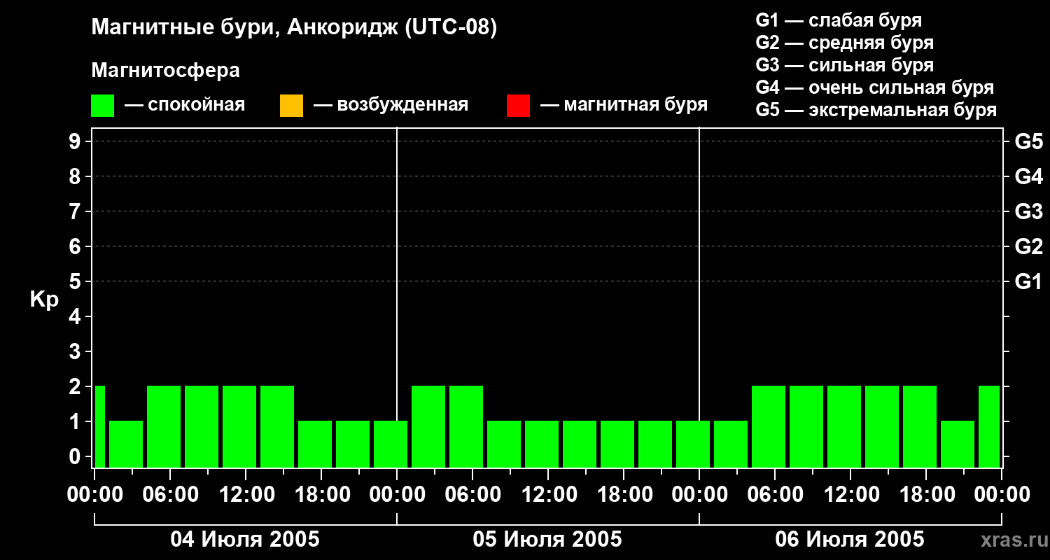 Магнитные бури в Анкоридже 6 июля 2005 года
