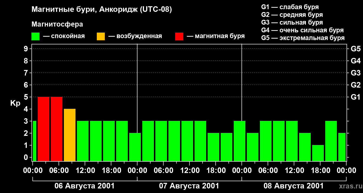Магнитные бури в Анкоридже — 8 августа 2001 года