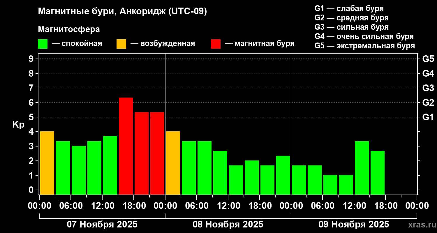Магнитные бури в Анкоридже 9 ноября 2025 года
