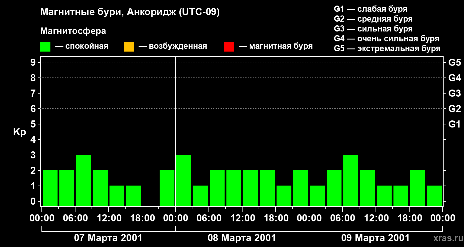 Магнитные бури в Анкоридже — 9 марта 2001 года