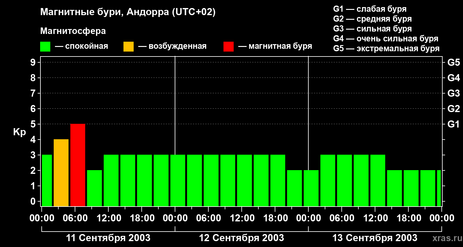 Магнитные бури в Андорре — 13 сентября 2003 года