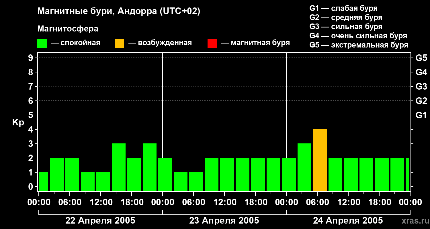 Магнитные бури в Андорре — 24 апреля 2005 года