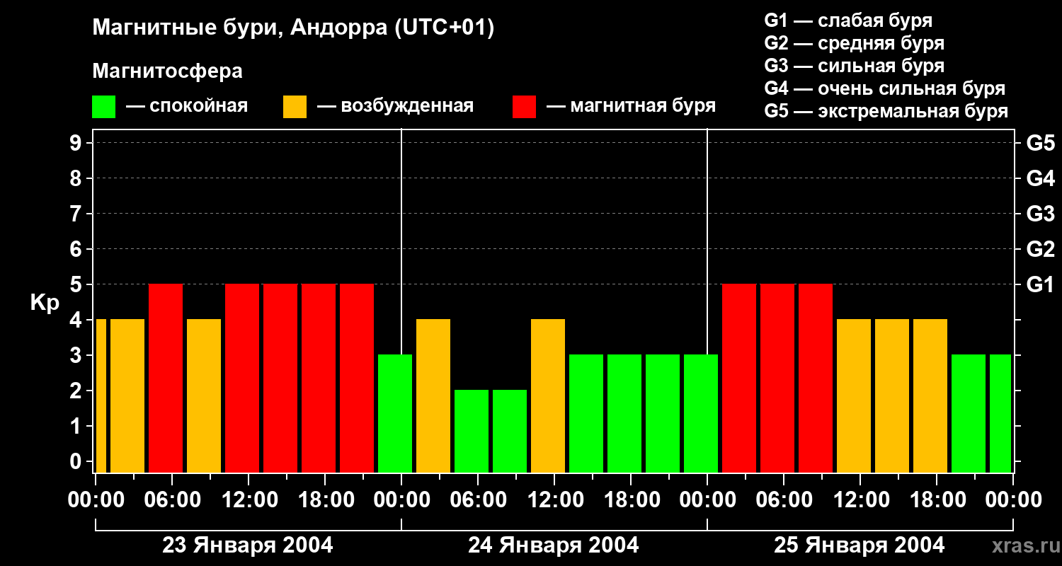 Магнитные бури в Андорре 25 января 2004 года