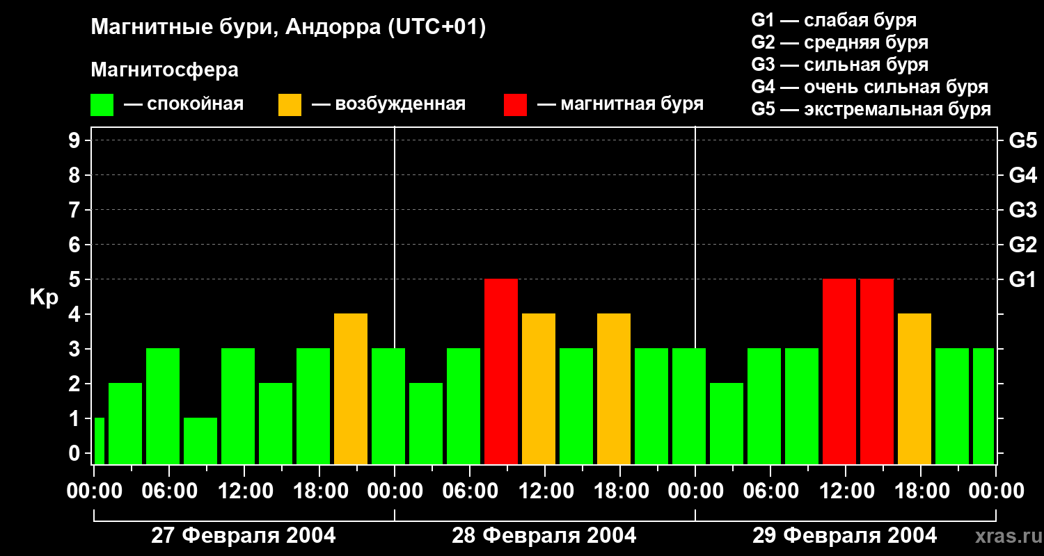 Магнитные бури в Андорре — 29 февраля 2004 года