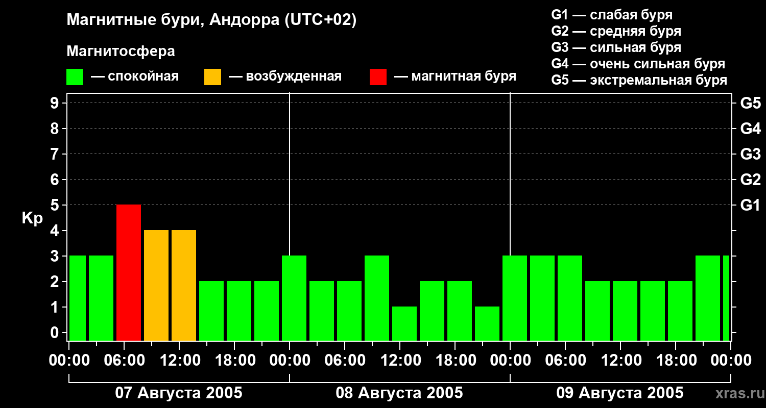 Магнитные бури в Андорре — 9 августа 2005 года