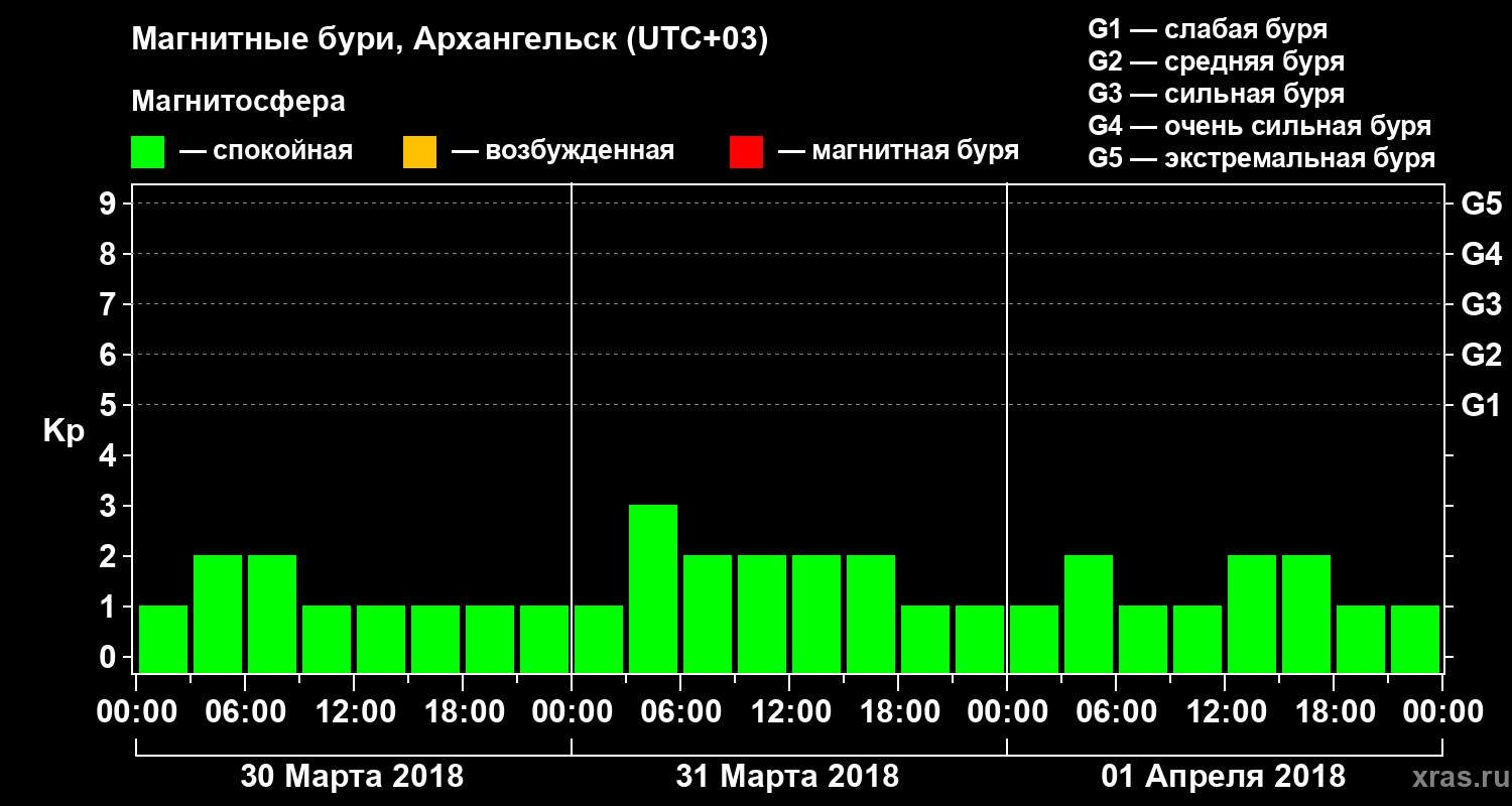 Магнитные бури в Архангельске 1 апреля 2018 года