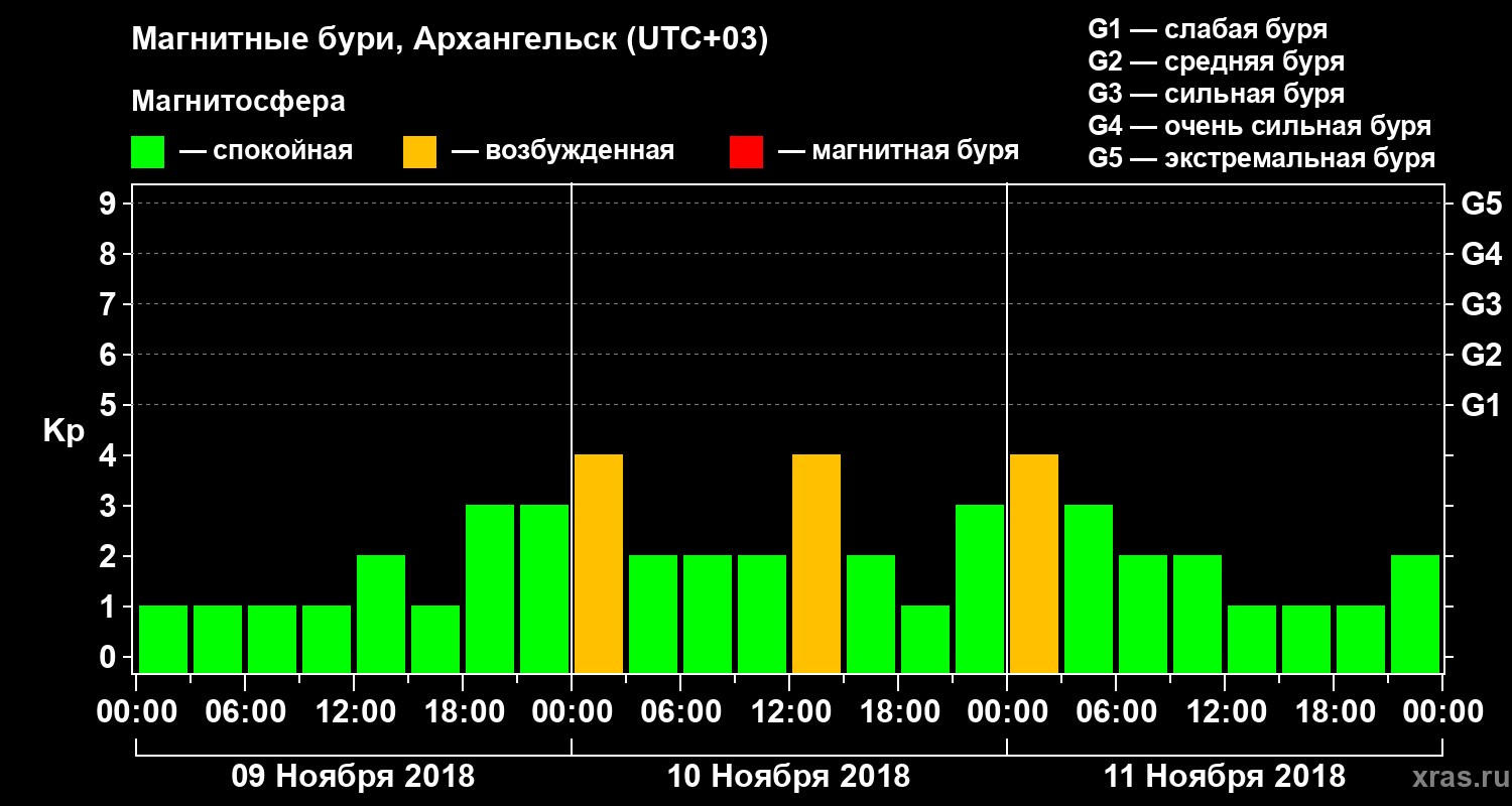 Магнитные бури в Архангельске 11 ноября 2018 года