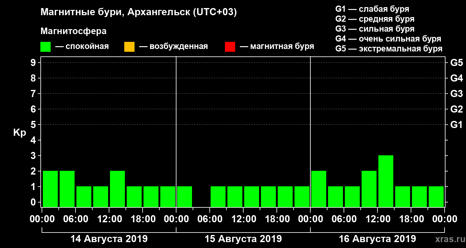 Магнитные бури в Архангельске 16 августа 2019 года