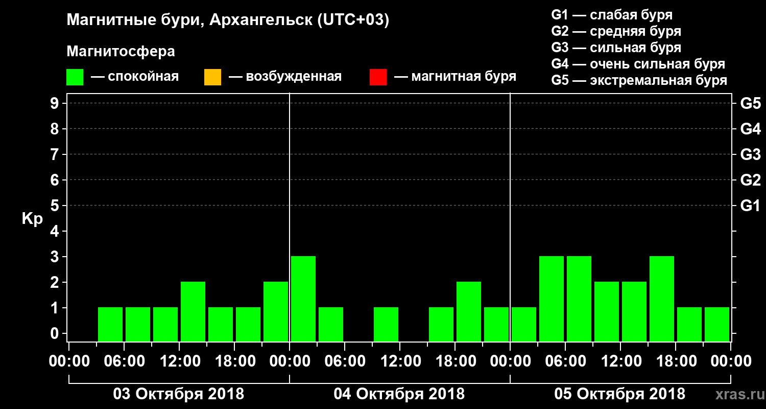 Магнитные бури в Архангельске 5 октября 2018 года