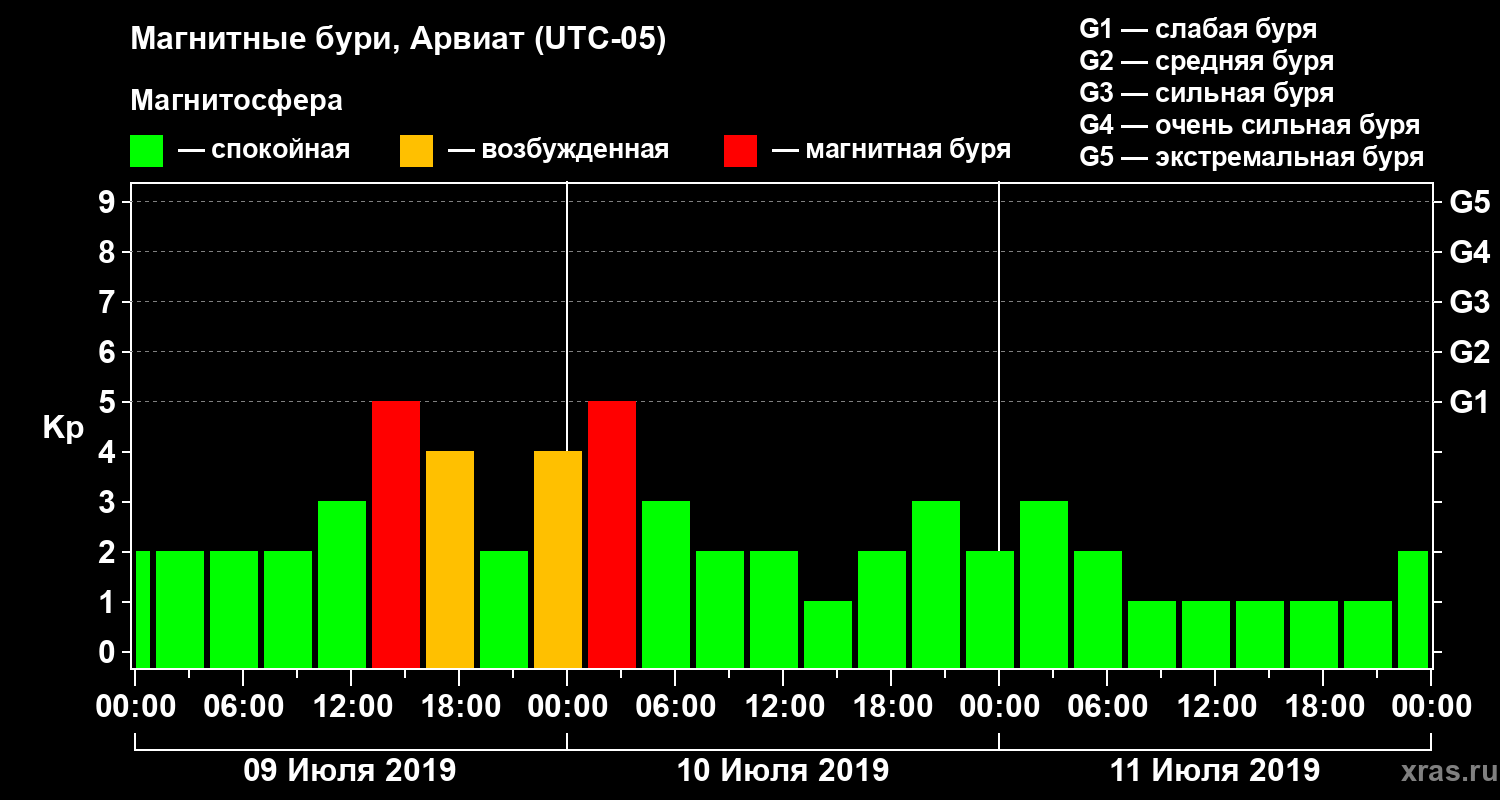Магнитные бури в Арвиате — 11 июля 2019 года