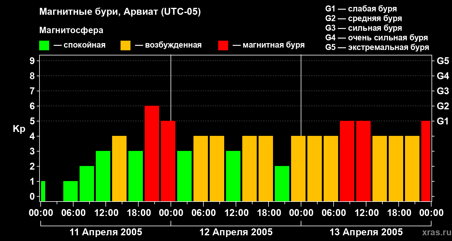Магнитные бури в Арвиате — 13 апреля 2005 года