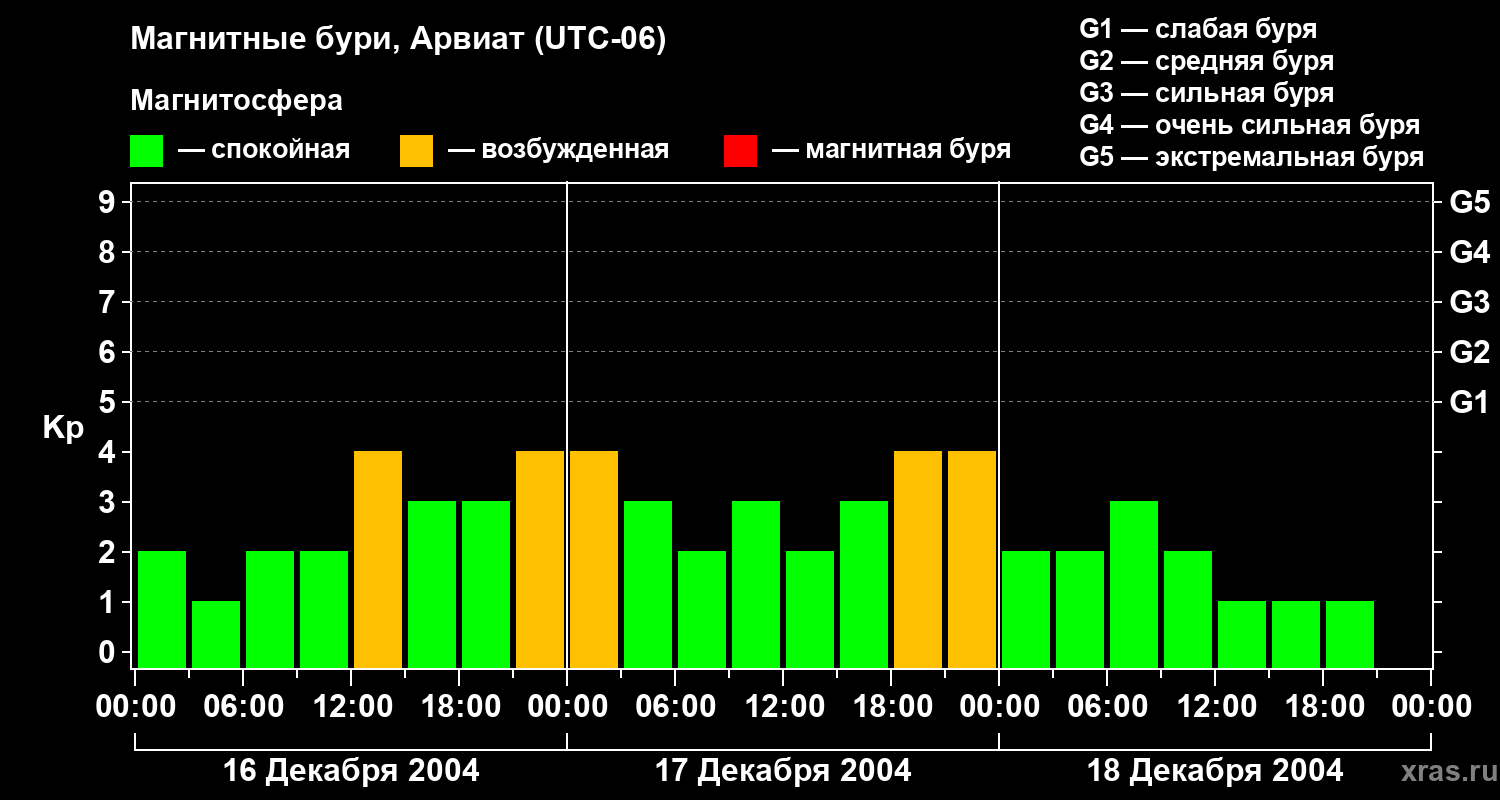 Магнитные бури в Арвиате — 18 декабря 2004 года