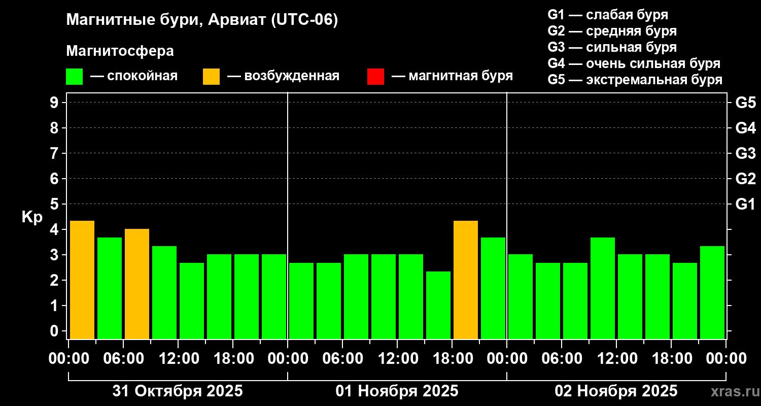 Магнитные бури в Арвиате — 2 ноября 2025 года