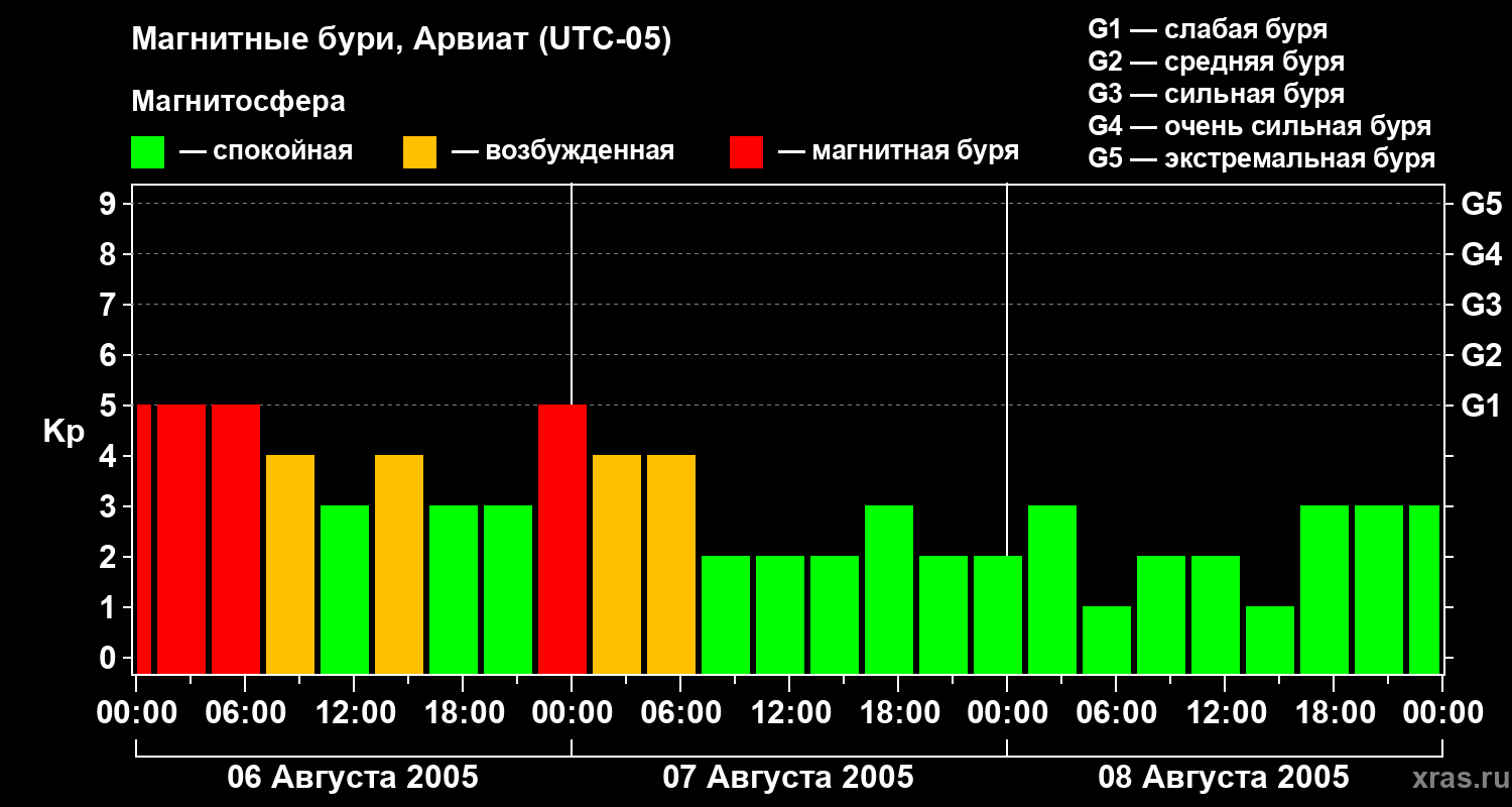 Магнитные бури в Арвиате — 8 августа 2005 года