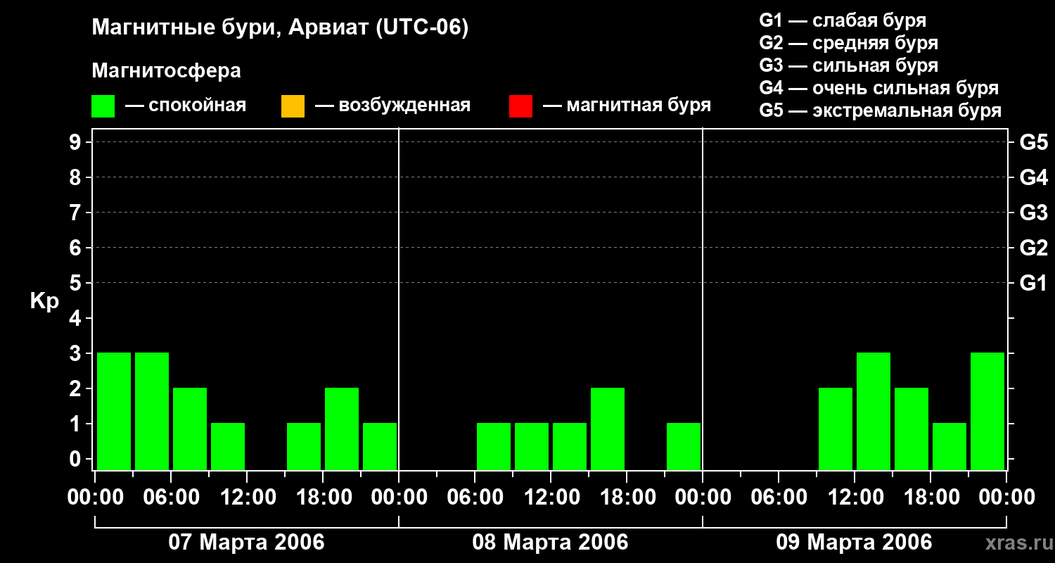 Магнитные бури в Арвиате — 9 марта 2006 года