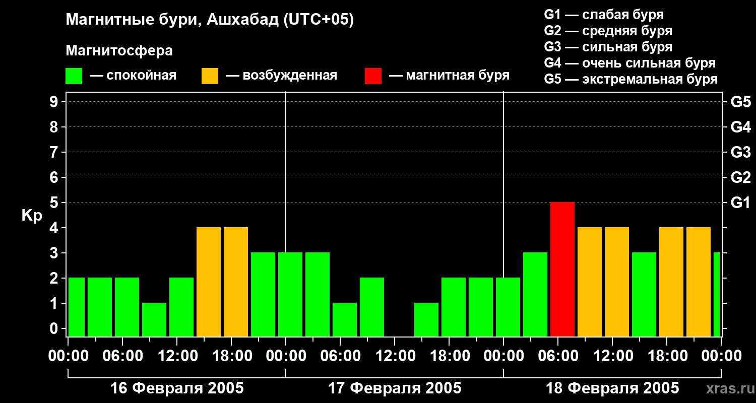 Магнитные бури в Ашхабаде — 18 февраля 2005 года