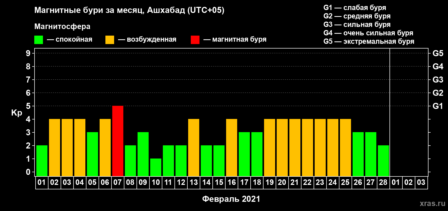 Магнитные бури в Ашхабаде в феврале 2021 года