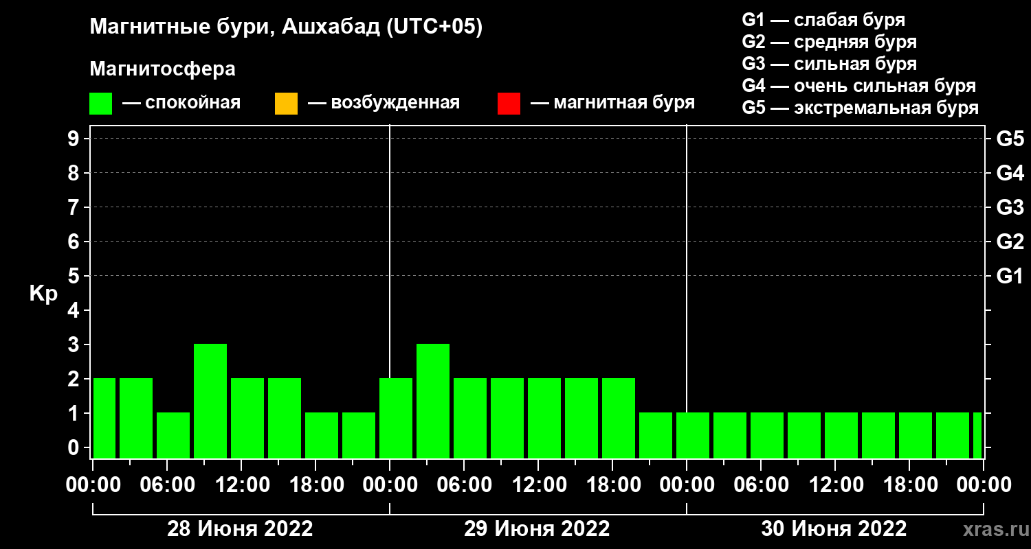 Магнитные бури в Ашхабаде 30 июня 2022 года