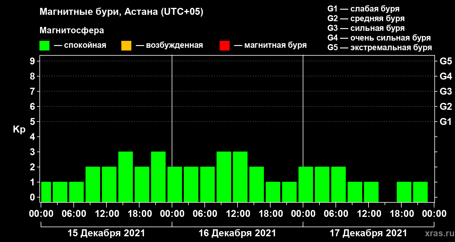 Изменения геомагнитного индекса Kp с 15 по 17 декабря 2021 года для средних широт