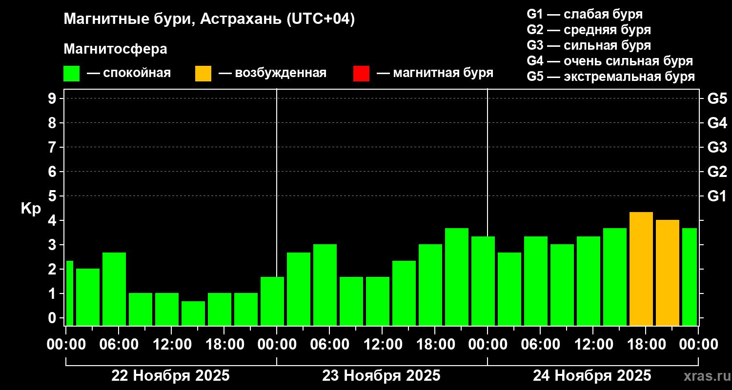 Магнитные бури Астрахани — 24 ноября 2025 года