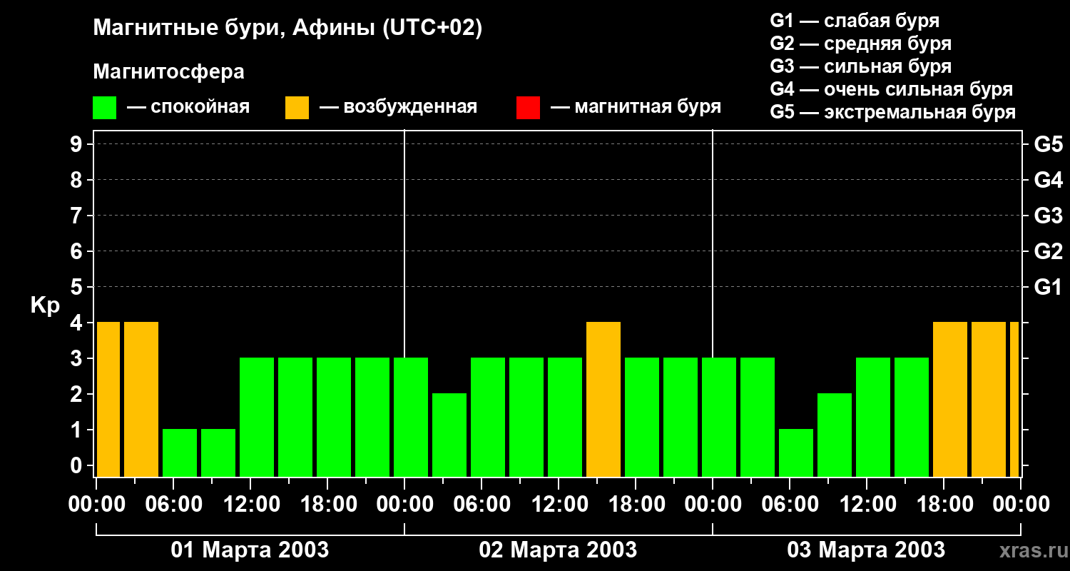 Магнитные бури Афинах 3 марта 2003 года