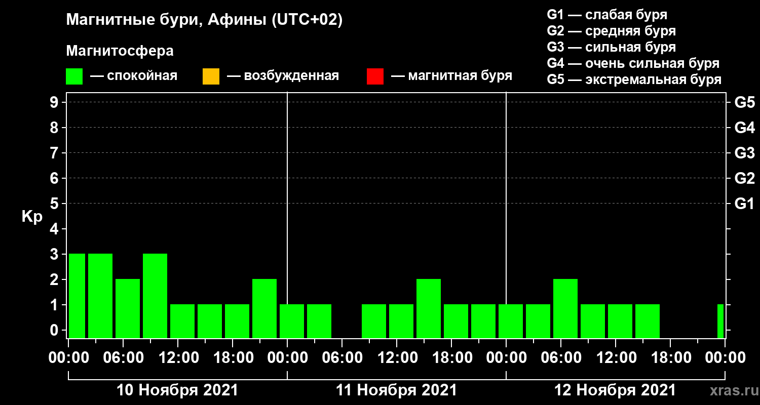Магнитные бури Афинах — 12 ноября 2021 года