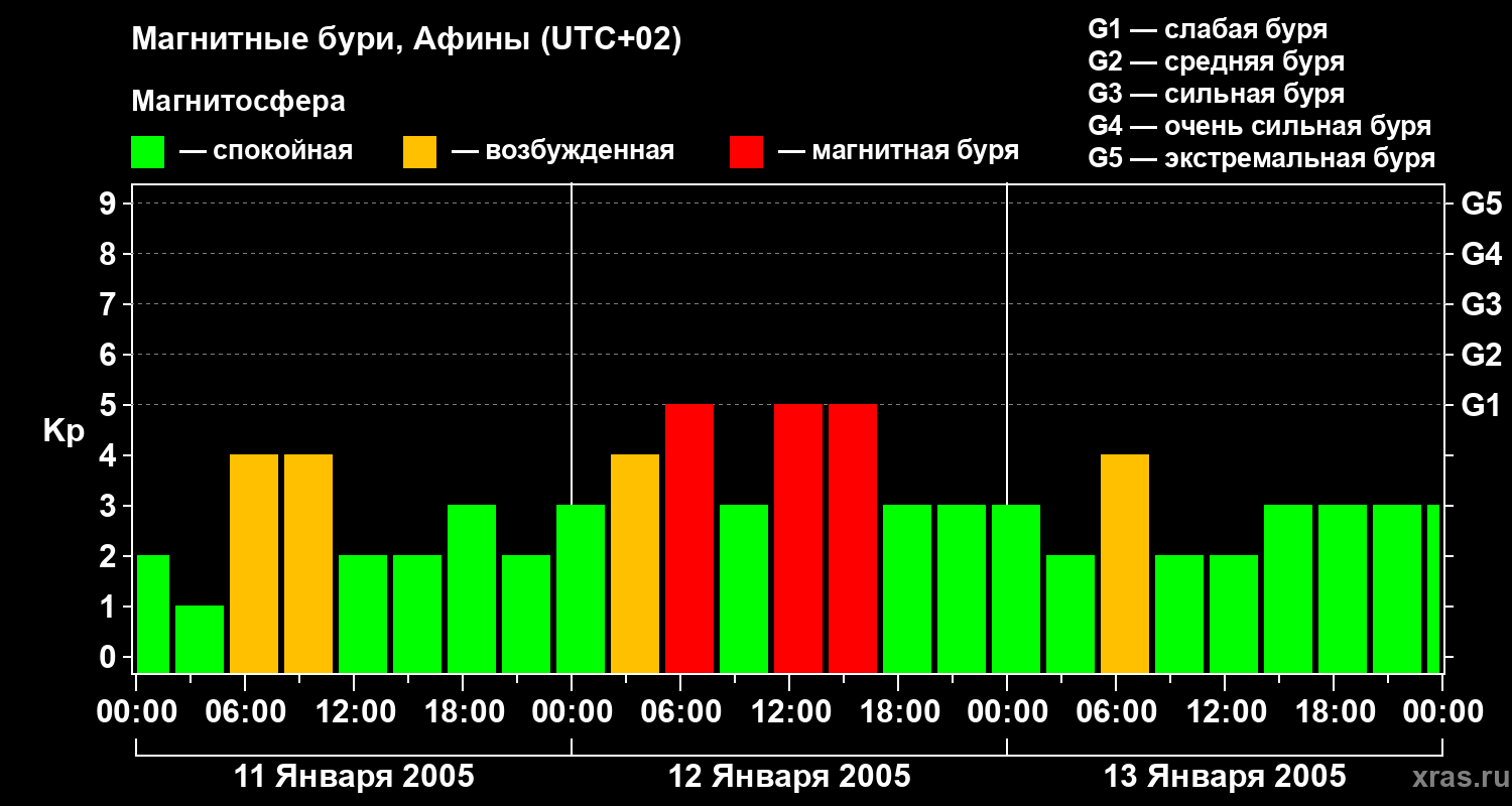 Магнитные бури Афинах 13 января 2005 года