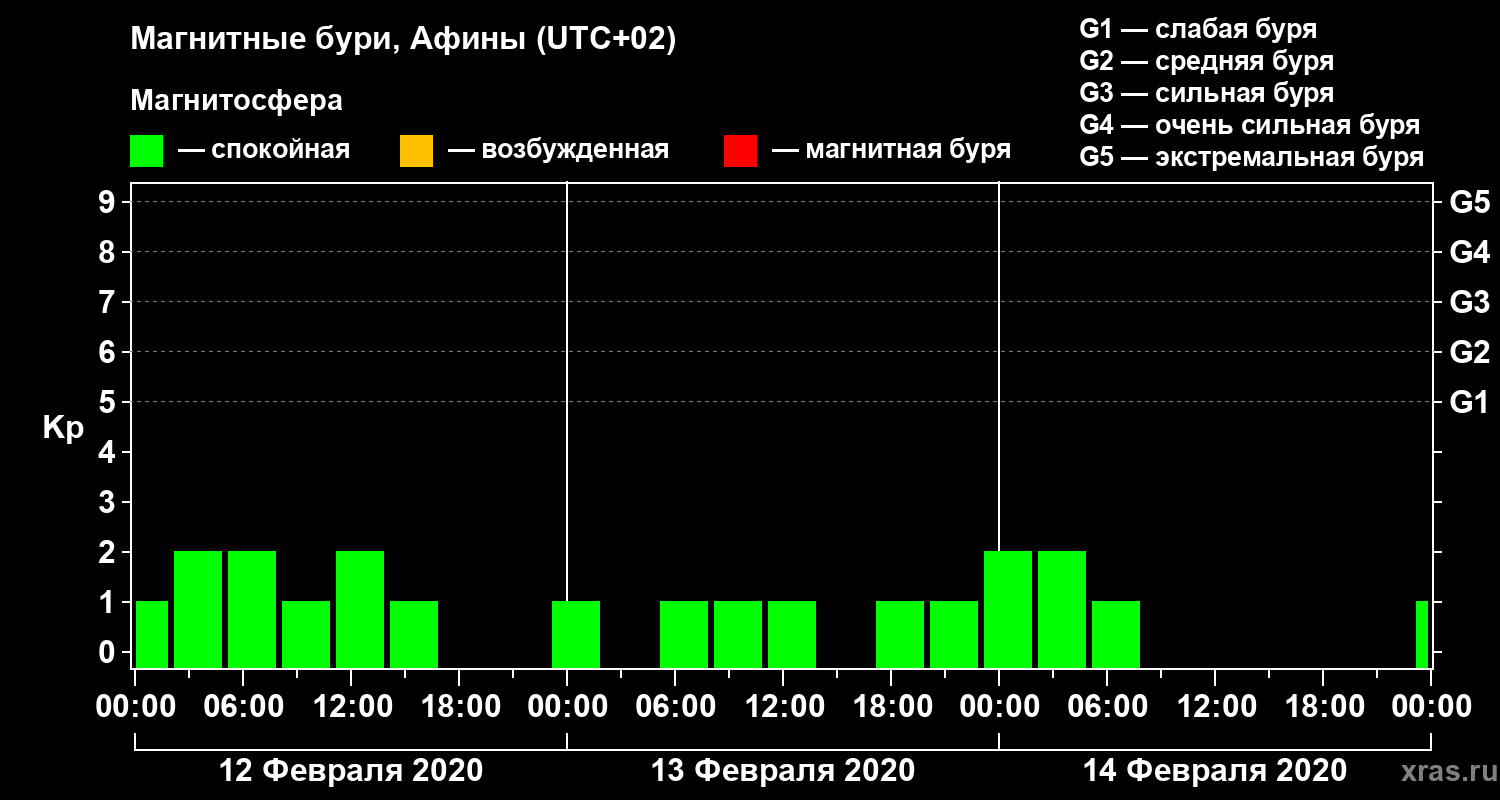 Магнитные бури Афинах — 14 февраля 2020 года