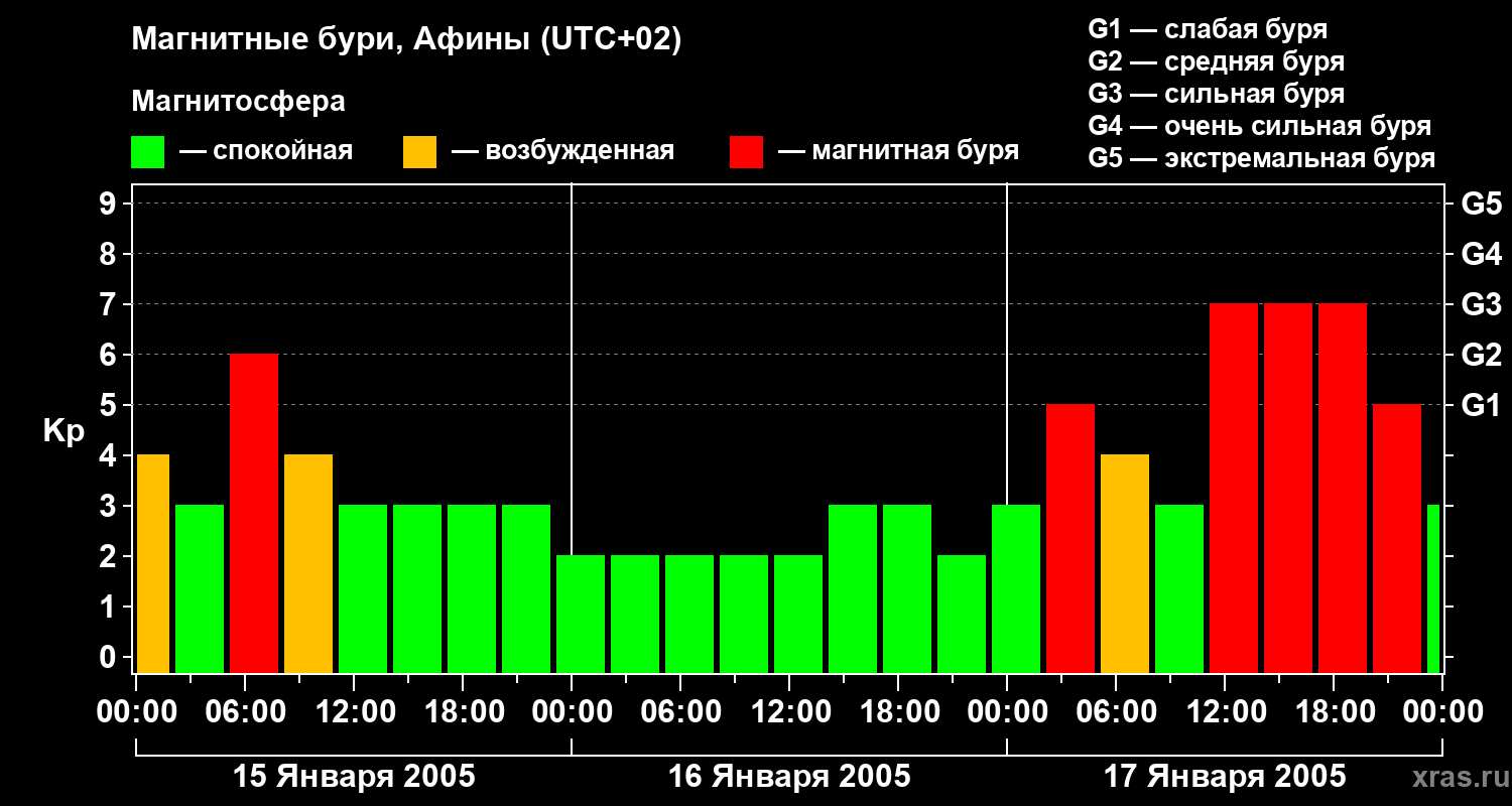 Магнитные бури Афинах 17 января 2005 года