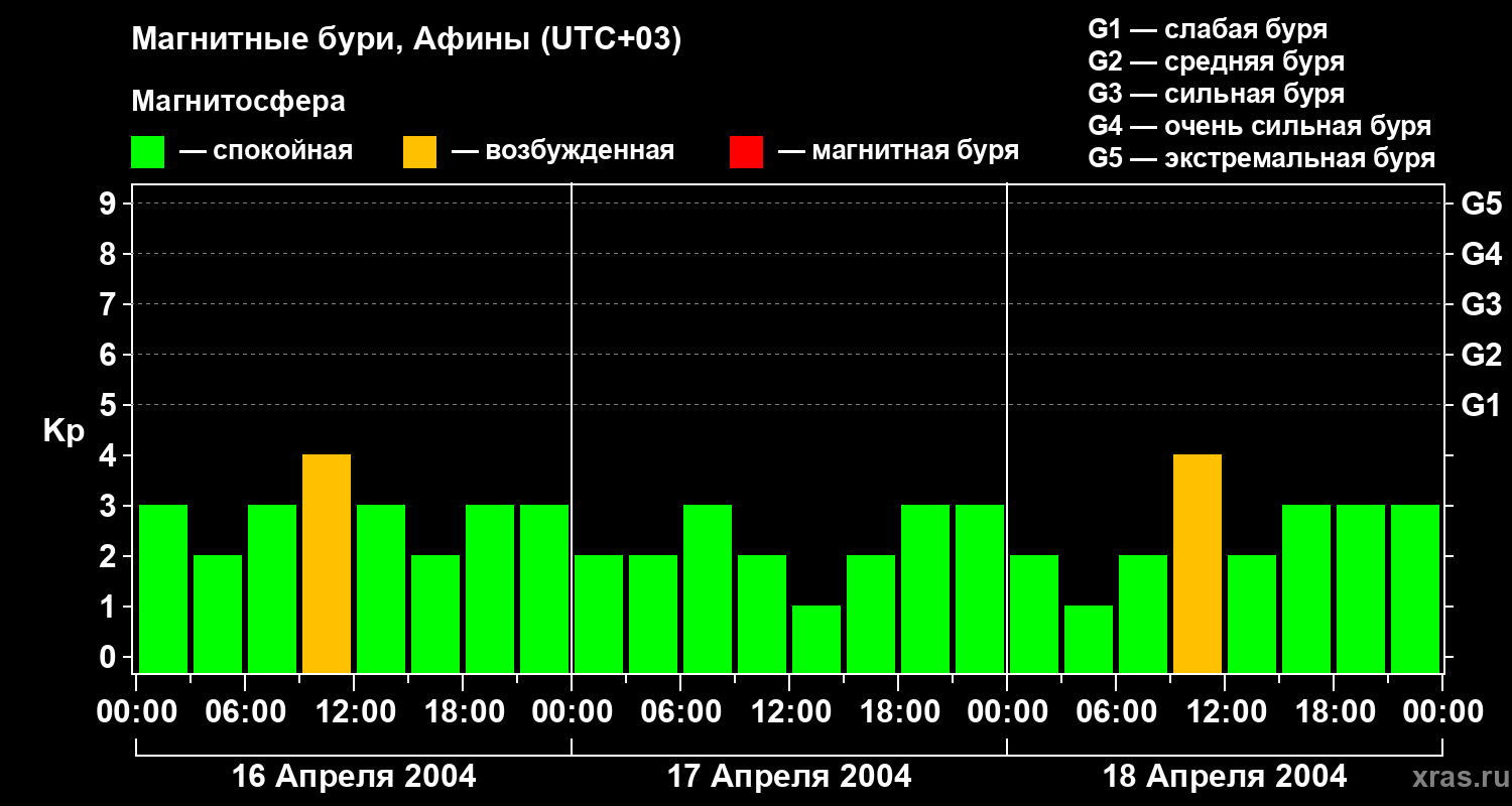 Магнитные бури Афинах 18 апреля 2004 года