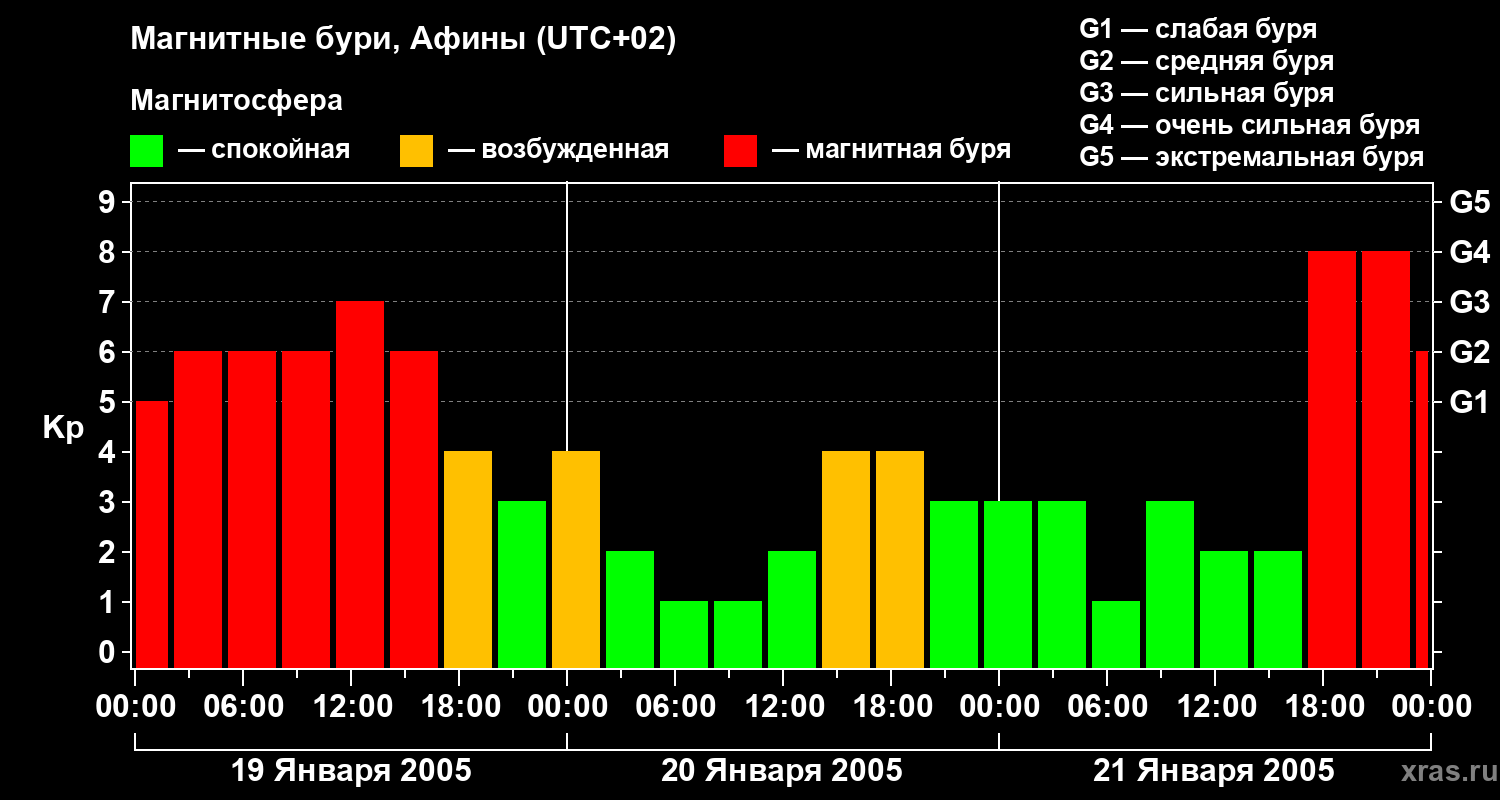 Магнитные бури Афинах 21 января 2005 года