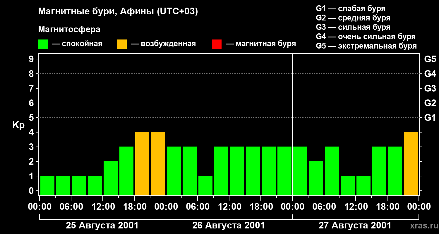 Магнитные бури Афинах 27 августа 2001 года
