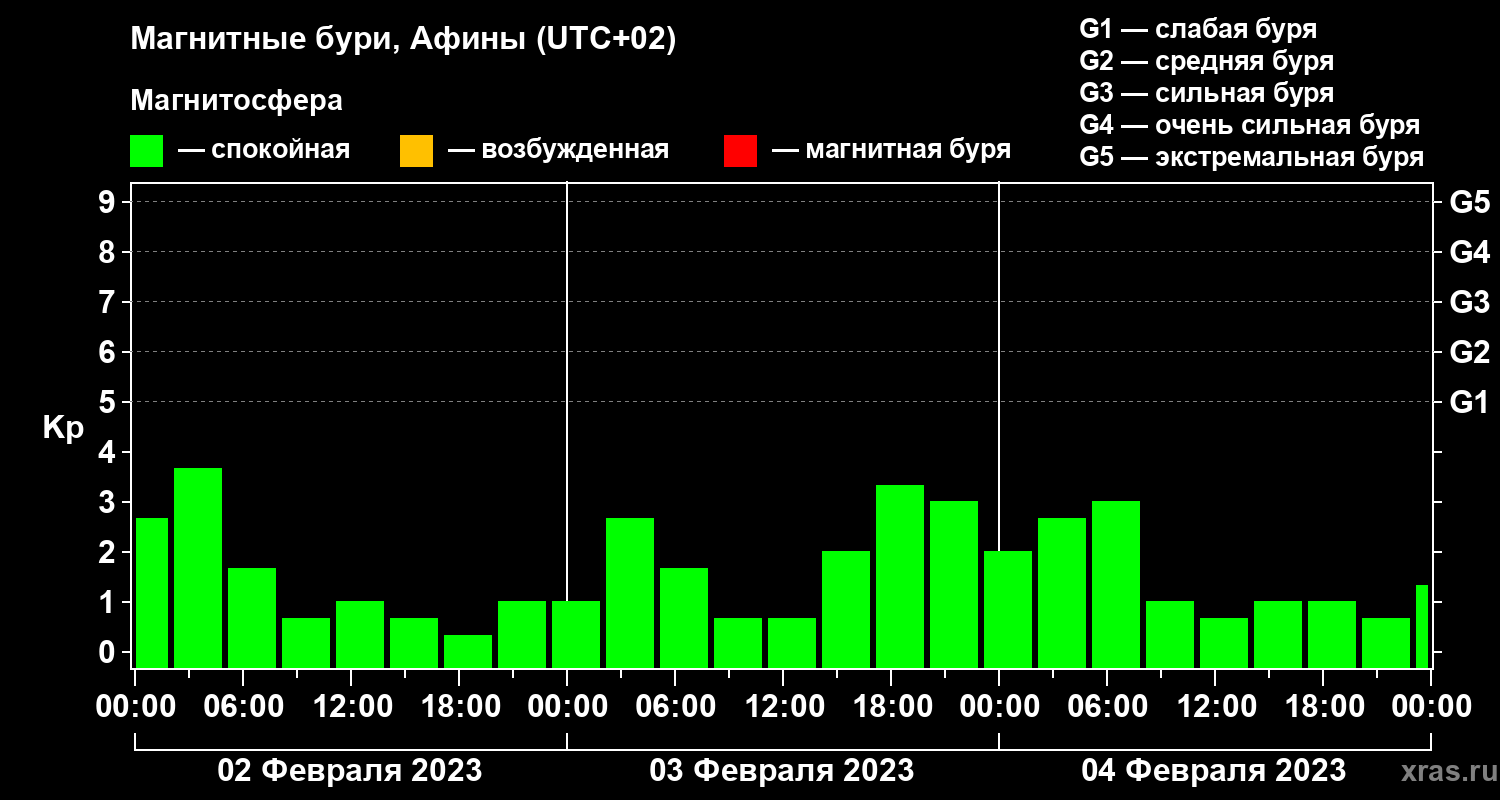 Магнитные бури Афинах — 4 февраля 2023 года