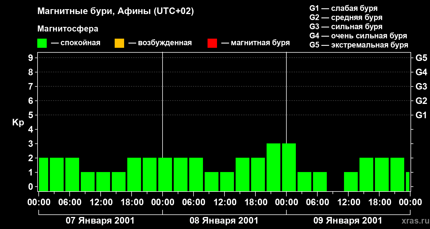 Магнитные бури Афинах 9 января 2001 года