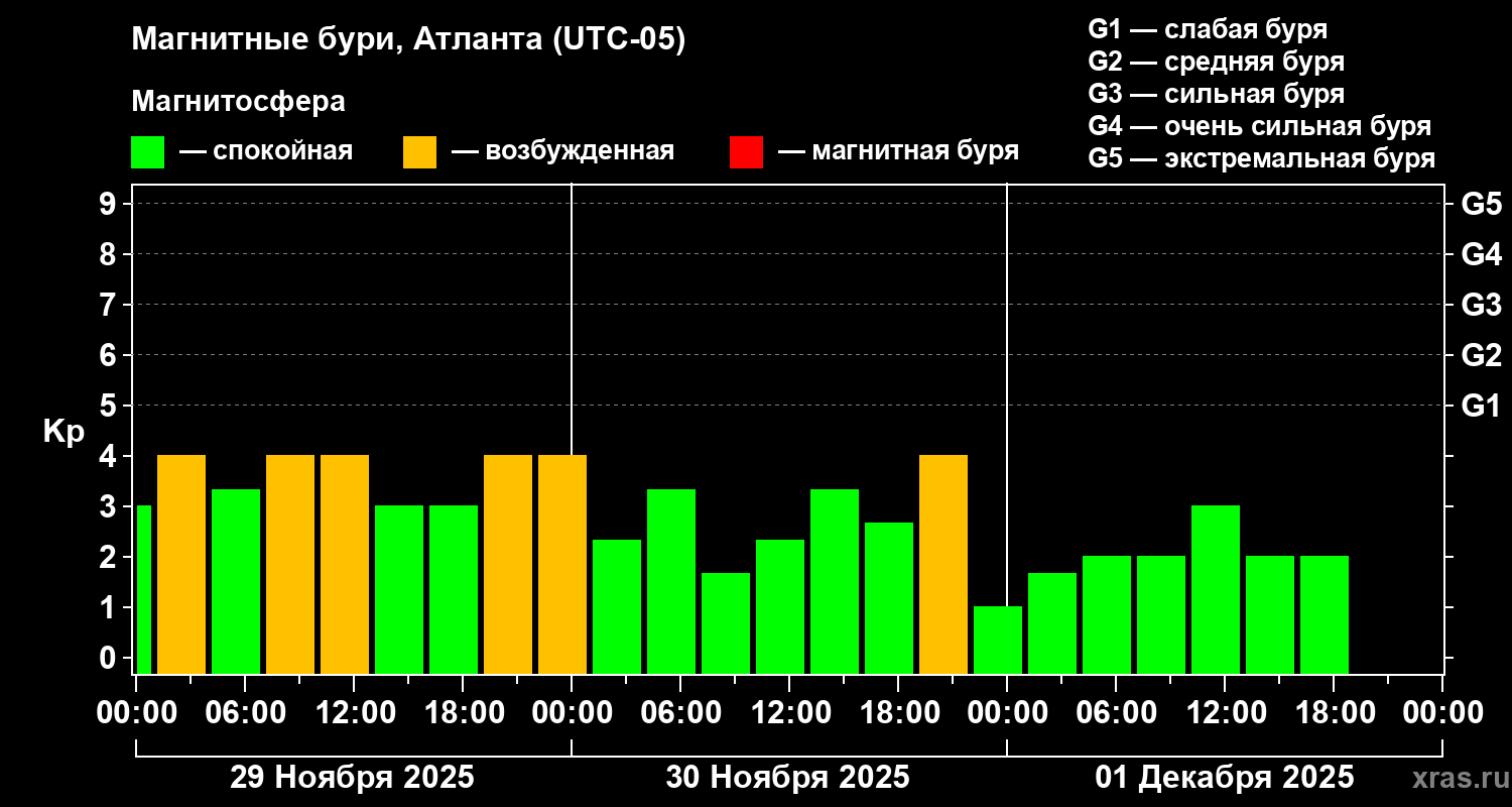 Магнитные бури в Атланте — 1 декабря 2025 года