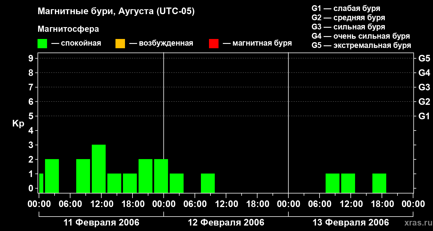 Магнитные бури в Аугусте — 13 февраля 2006 года