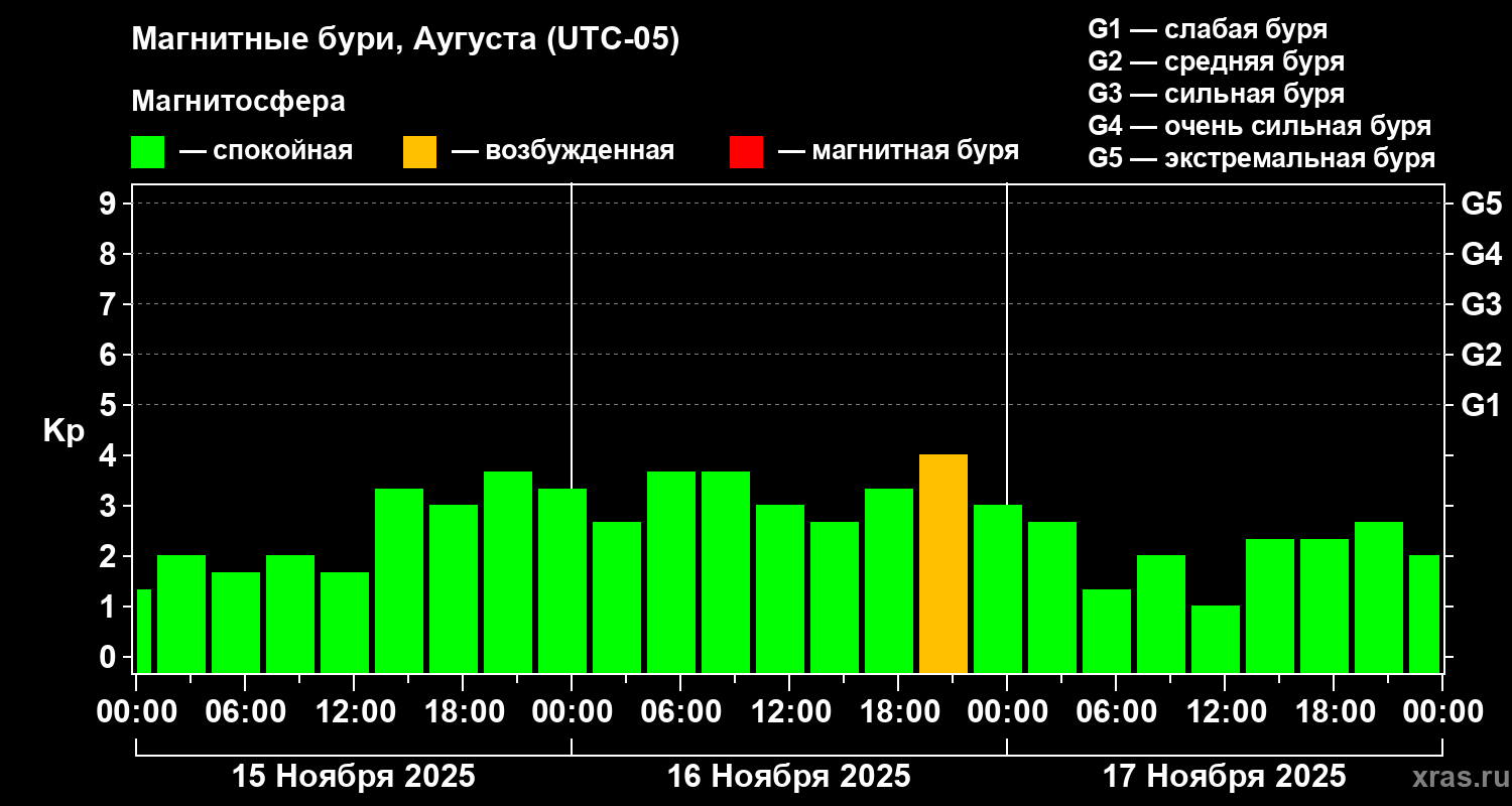 Магнитные бури в Аугусте 17 ноября 2025 года